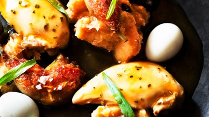 L Art De Gourmet Provence Meets Piemont Wachteln Mit Thymian Rosmarin Trauben Weisswein Und Mandelgrappa